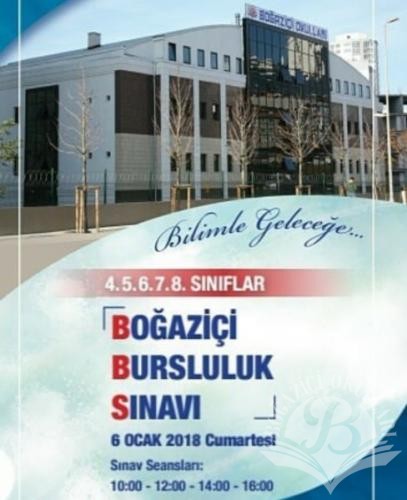 Boğaziçi Bursluluk Sınavı 4.5.6.7.8.9.10.ve11.sınıflar için 6 Ocak 2018 Cumartesi günü yapılacaktır.Detaylı bilgi için iletişim kısmından ulaşabilirsiniz...
